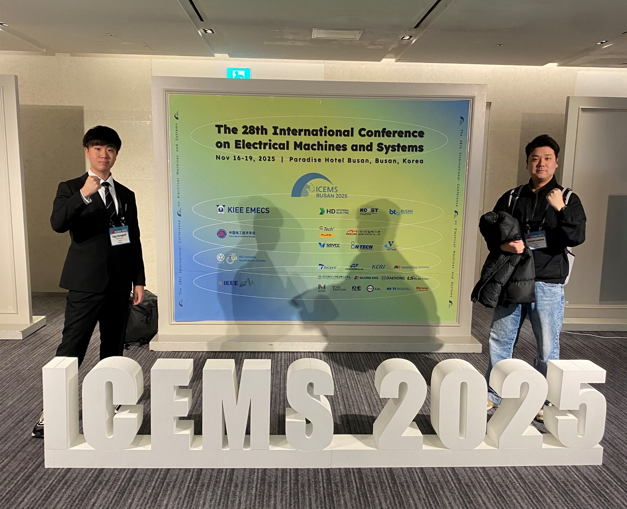 韓国・釜山で開催されたICEMS2025に,修士1年の山口君と修士2年の河原君が参加しました