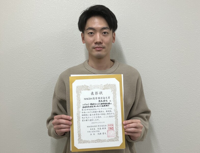 優秀講演論文賞を受賞した筬島君!